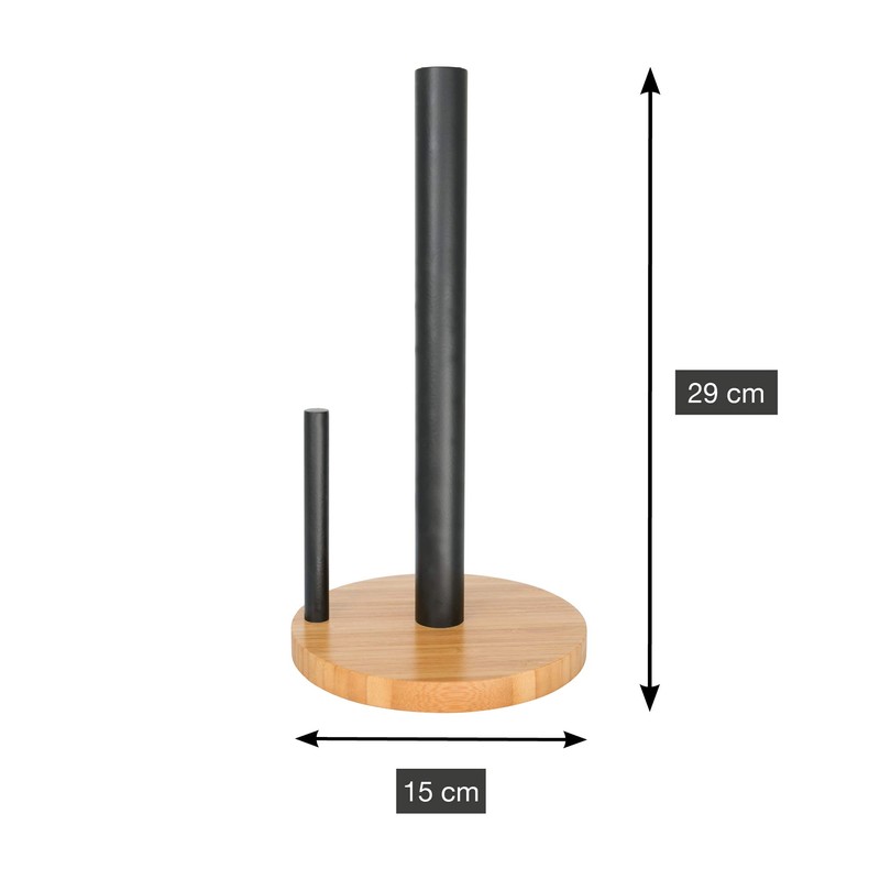 Point-Virgule Kitchen Roll Holder Standing Bamboo Wood Kitchen Accessories Black Diameter 15 cm Height 29 cm