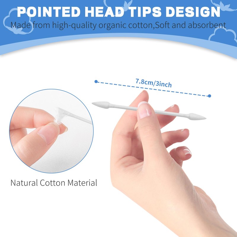 • 【100% Cotton and Safety】: Pointed cotton swabs are made of High quality natural cotton, soft & absorbent. Cotton swab handle made of strong recycled paper, not easy to break, strong toughness, safer to use, You can use them with confidence