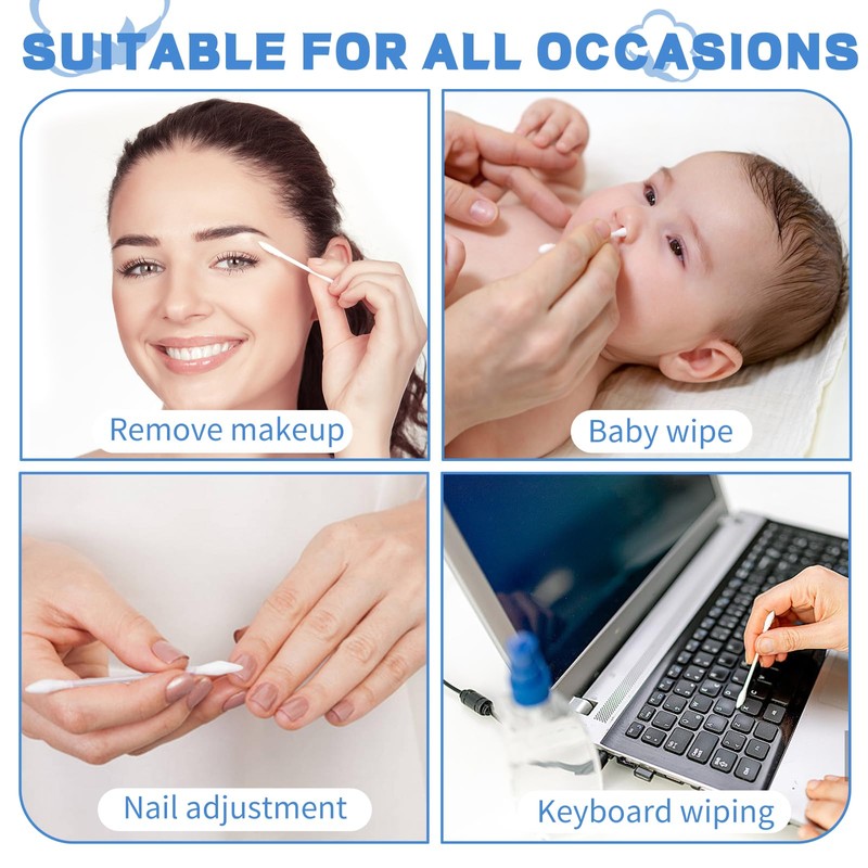 • 【Widely Used】: Double pointed cotton swabs can be applied in Perfect for touching up nail polish, lipstick & lip gloss, eye liner., pet care, baby care, arts and crafts, household and collectibles cleaning and more, cleaning electronics, etc