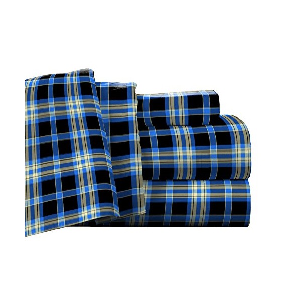Pointehaven Flannel Deep Pocket Set with Oversized Flat Sheet, King, Ashby Plaid