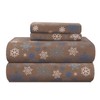 Pointehaven Heavy Weight Printed Flannel Sheet Set, Queen, Snow Flakes/Tan