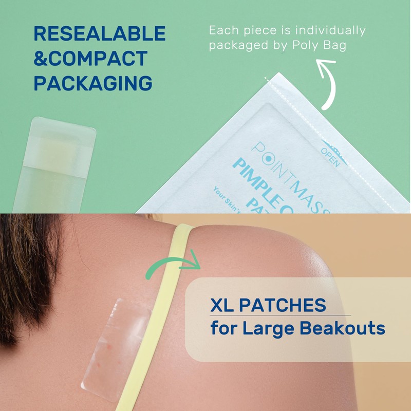 POINTMASS Large Pimple Patches for Face and Body, Hydrocolloid Acne Patches for Big Zit Breakouts and Blemish, Acne Spot Treatment w/Tea Tree Oil for Chin, Nose, Forehead, Body, Back, Neck & Chest