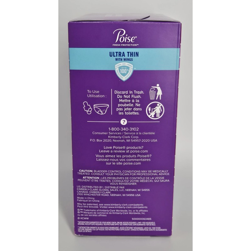 Poise Fresh Protection Women's Ultra Thin Wings Incontinence Pads 4 Drop 30 Pads
