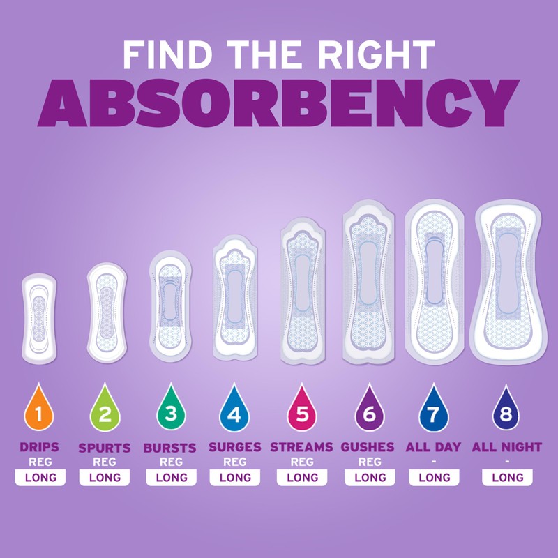 - WETNESS PROTECTION: These women's incontinence pads are made with a moisture-wicking top layer designed to feel dry throughout wear