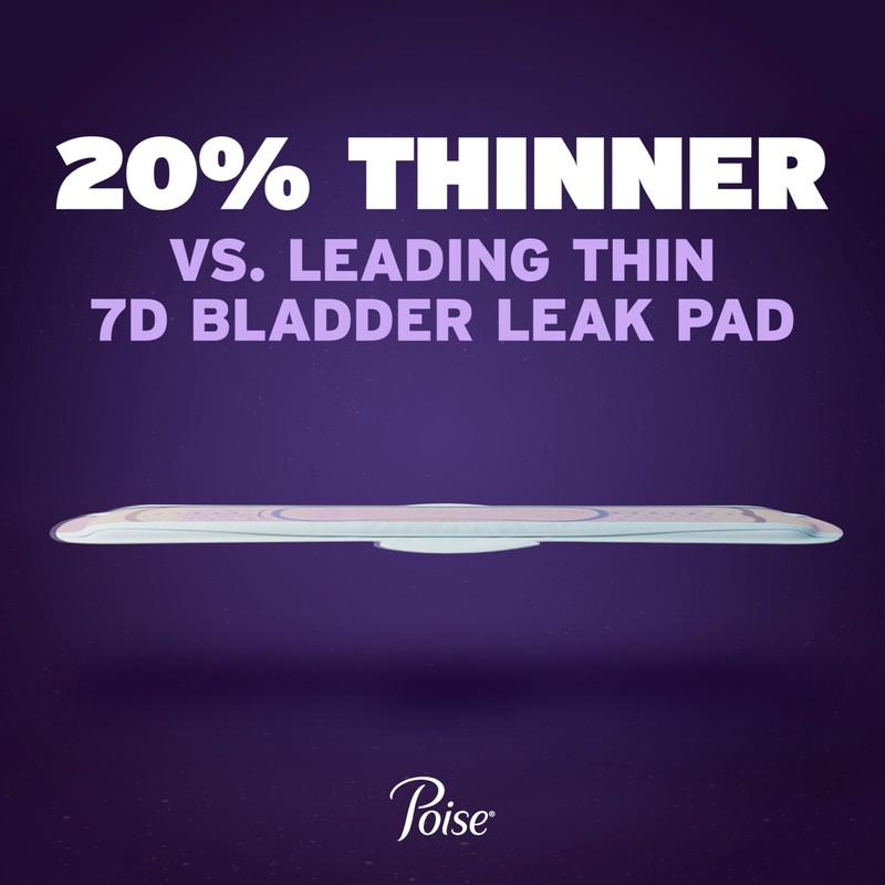 Enjoy up to 100% clean, dry and fresh protection guaranteed* with Poise Overnight Incontinence & Postpartum Pads with Wings for Bladder Leaks. Unlike period pads, which are meant for menstrual needs, Poise pads are designed to offer protection against light bladder leaks. Offering up to 12 hours of wetness protection, our incontinence pads for women are 25x drier than the leading period pad to help you get a good night's rest. They also feature a CaptureCore that wicks away wetness in seconds for better bladder leak protection than the leading period pad. The Dry-Touch layer rapidly locks away more wetness than the leading period pad for a clean feel. Poise Ultra Thin Incontinence & Postpartum Pads for bladder leaks are available in 3 Drop Light, 4 Drop Moderate, 5 Drop Maximum, 6 Drop Ultimate, and 8 Drop Overnight absorbencies. Shop for Poise discreetly by having it shipped directly to your door or pick up curbside. Poise adult incontinence products are HSA/FSA-eligible in the US check with your provider for coverage details. (*Purchase by 12/31/25. All requests must be postmarked within 30 days of purchase. Online access required. Limit 1 per household. Original receipt/UPC required. Restrictions apply. See Poise website for details)