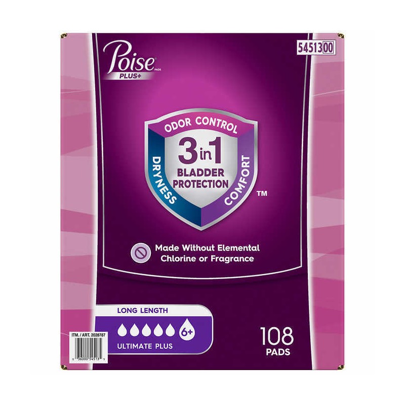 Poise Overnight Incontinence Pads, Ultimate Absorbency, 108 Count