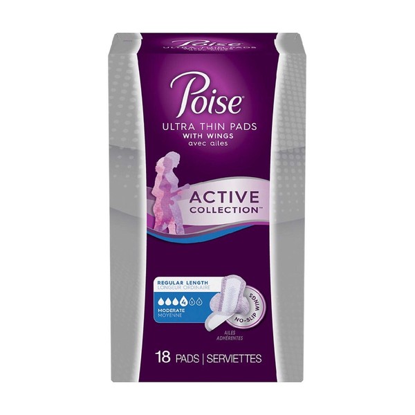 Poise Ultra Thin Pads with Wings Active Collection (Moderate - 18 Pads)