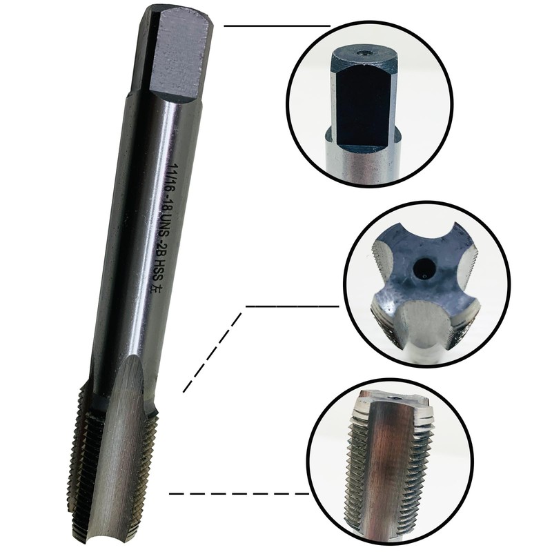POITRAXC 11/16"- 18 Left Hand Straight Flute Thread Tap Machine Tap 11/16-18 TPI Nominal Diameter 11/16" Thread Per Inch 18 Fin Thread UNS Thread High Speed Steel HSS W6542