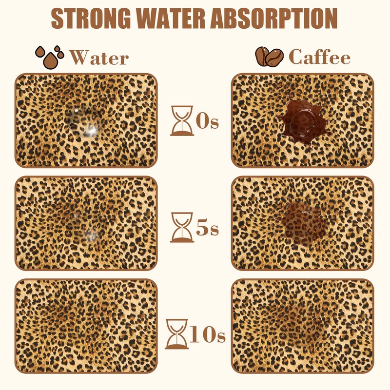POIUBLE Leopard Print Dish Drying Mat for Kitchen Counter Coffee Bar Mat Hide Stain Absorbent Rubber Backed Coffee Maker Espresso Machine Accessories 11.8 x 19.7 Inch