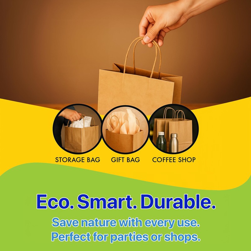 - 2. Eco-Friendly & Reusable Go green with Pokanic! Our kraft paper bags are fully recyclable and designed for multiple uses. Help reduce plastic waste while enjoying a stylish, sustainable alternative. Perfect for eco-conscious businesses and families who want to make a positive impact on the environment without compromising quality or style.