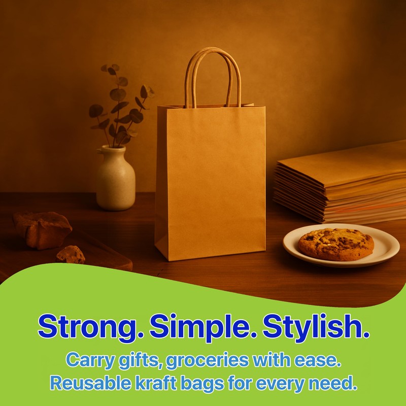 - 1. Durable & Reliable Strength Made from premium brown kraft paper, these bags are built to handle heavy meals, takeout boxes, and party supplies without tearing. Reinforced handles offer extra security and comfort when carrying food or supplies. Whether for personal meal prep or business use, you can trust these bags to stay strong and reliable.