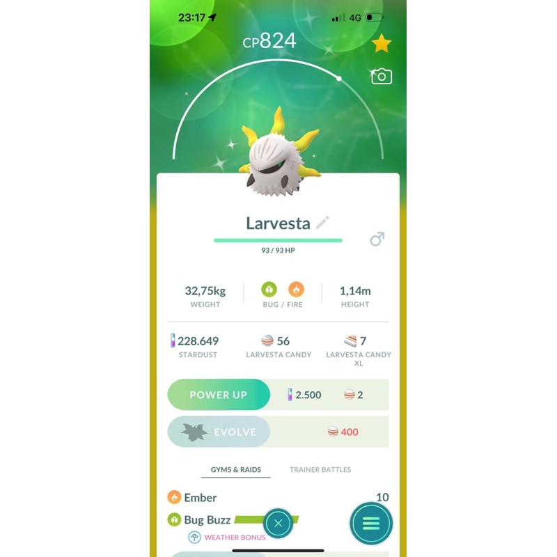 Pokémon Go | Shiny Larvesta | P T C 100K Stardust