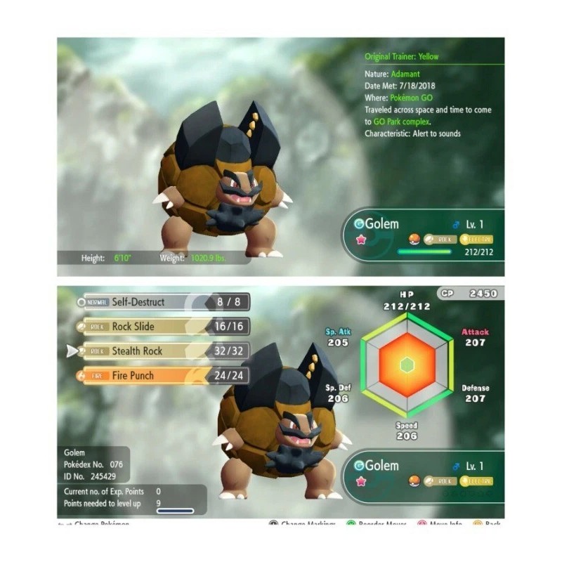 Pokémon Let's Go Pikachu & Eevee SHINY CUSTOMIZABLE ALOLAN GOLEM FAST TRADE