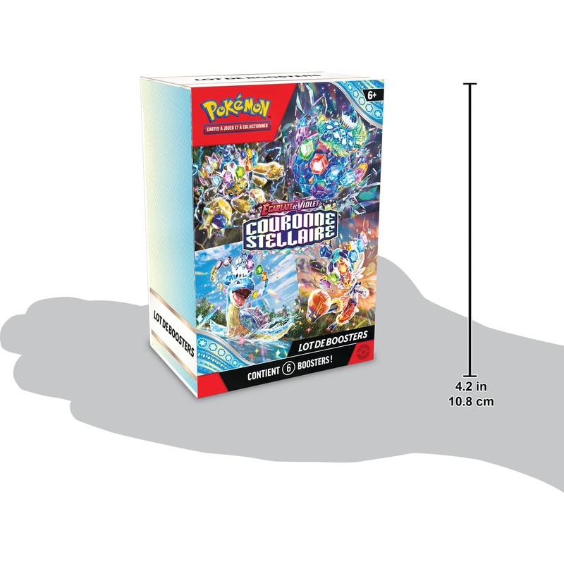- Includes 6 booster packs of the Scarlet and Purple expansion - Star Crown from the Pokémon TCG (each booster contains 10 cards and 1 base energy). Cards vary per booster.)