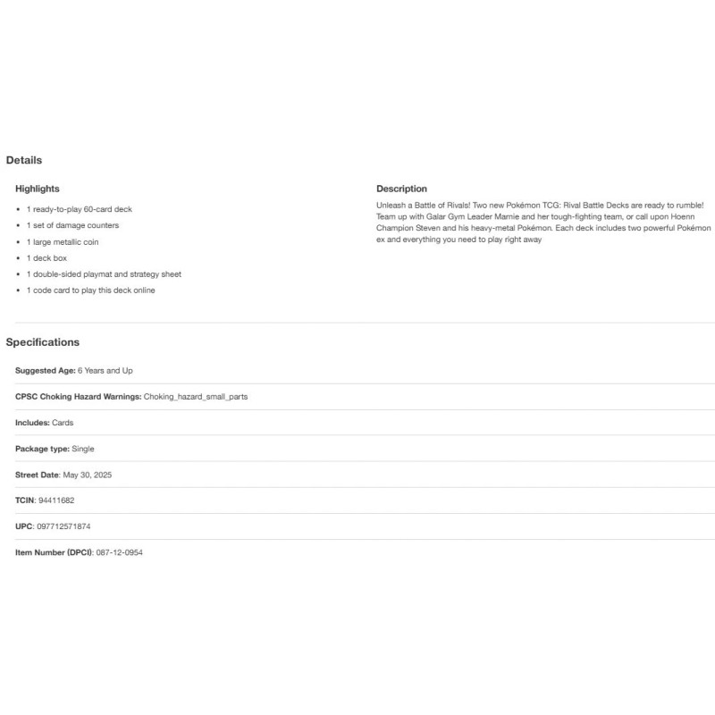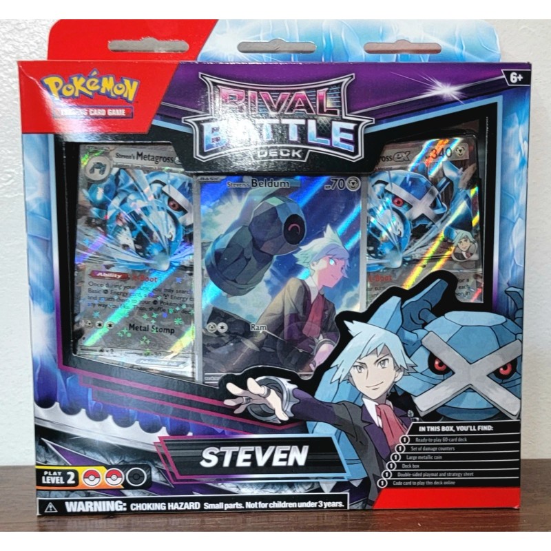 Trainer’s Pokémon are back, and you can take them straight into battle with one of two Rival Battle Decks centered around Spikemuth’s hometown hero Marnie and Hoenn Champion Steven. Are you keen to go punk with Marnie’s Grimmsnarl ex and its Darkness Energy acceleration, or is booting up Energy attachments with Steven’s Metagross ex more your vibe? Each deck features Pokémon and Trainer cards that perfectly match their style and best facilitate their star Pokémon ex!