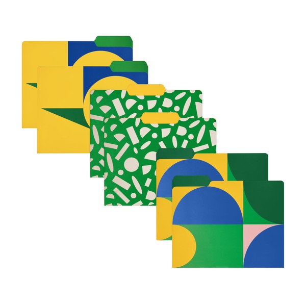 Poketo File Folder - Vibrant Pattern 1/3 Tab File Organizers, Letter Size Folders - 6 Pack, Blue and Green Assorted Designs
