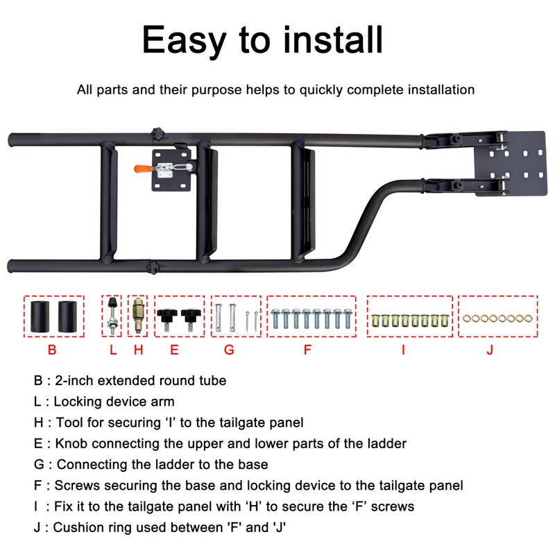 - [Package] 1 set of 40" pickup truck tailgate ladder with all mount hardware and extending tubes, as well as installation manual; Note: Drill is needed during installation