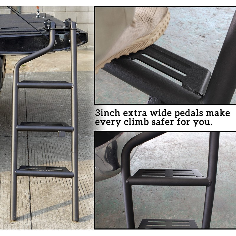 - [Material] High quality metal steel, anti-corrosion treatment and eletroplating generally make this tailgate ladder have fair rust proof capacity
