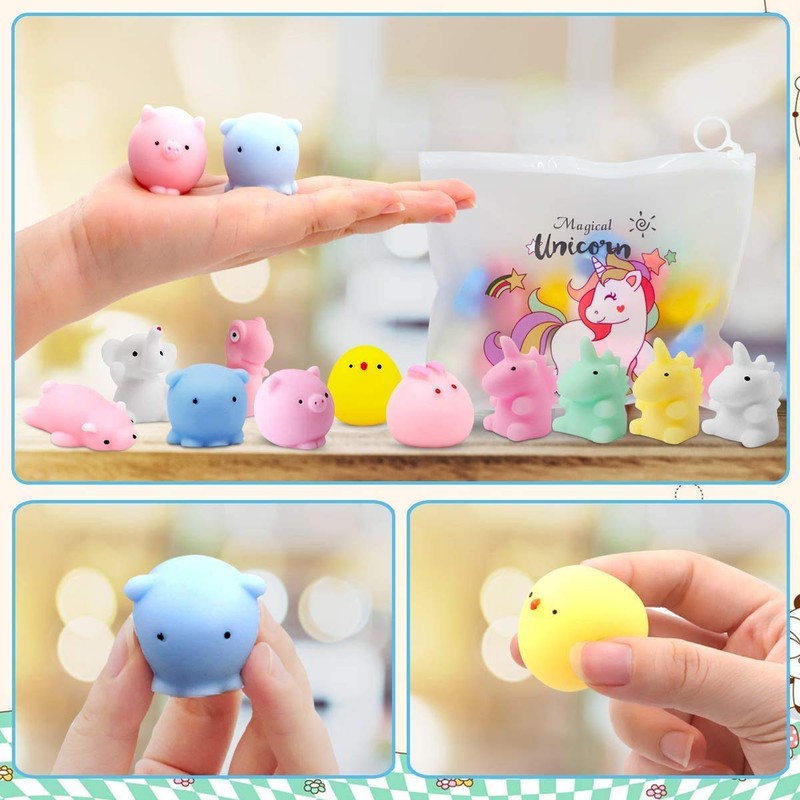 - PACKAGE INCLUDED- 25 Pcs mini animal squishies with 1 unicorn bag.There are unicorn, rabbit, cat, panda, elephant and some other mini kawaii animal squishies.