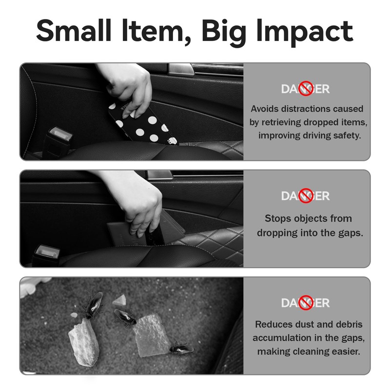 - Simple. Effective Elegant. The seat gap filler for the car offers a minimalist elegant solution to close annoying gaps. A car gadget interior gap filler that does not require chemicals.