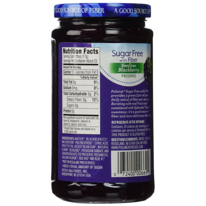 - Polaner Sugar Free with Fiber Seedless Blackberry Preserves