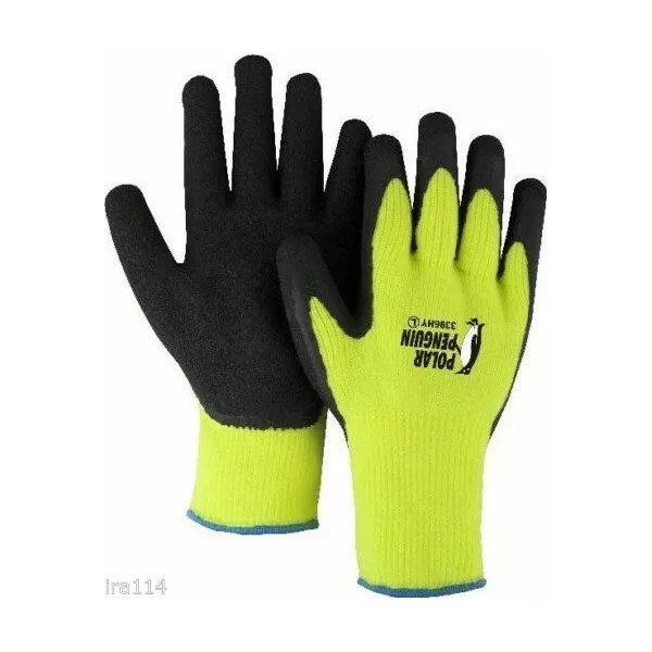 Polar Penguin 12 Pairs xl Majestic HI-VIZ Lined Yellow Rubber Palm Glove Polar Penguin