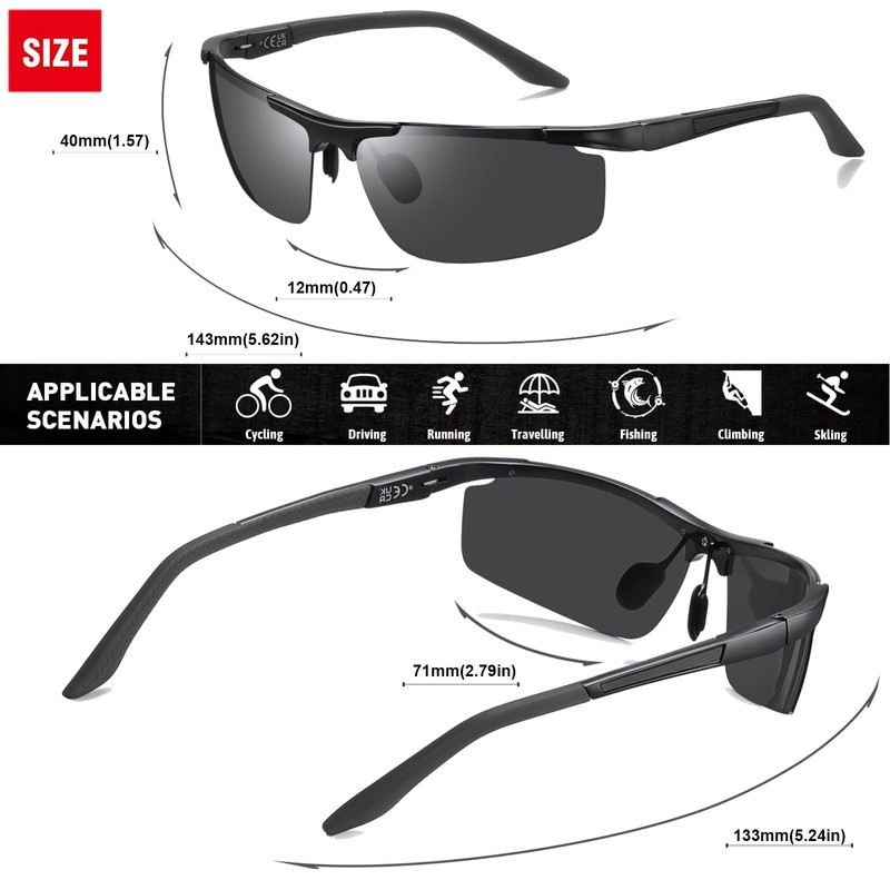 - 👓【Al-Mg Metal Alloy Frame for Ultimate Performance】: 🏃Crafted from lightweight AL-MG alloy, our frame design is tailored for the demands of cycling, driving, running, fishing, skiing, and climbing enthusiasts. Weighing just 25g, these sunglasses provide exceptional comfort during extended wear.>>sunglasses men polarized