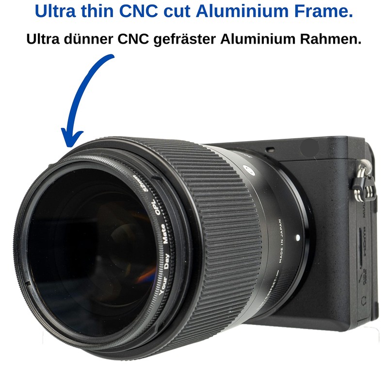 • 49 mm CPL protective filter = increase colour saturation in your image: the filter effect of this CPL filter can be reinforced and weakened by turning: