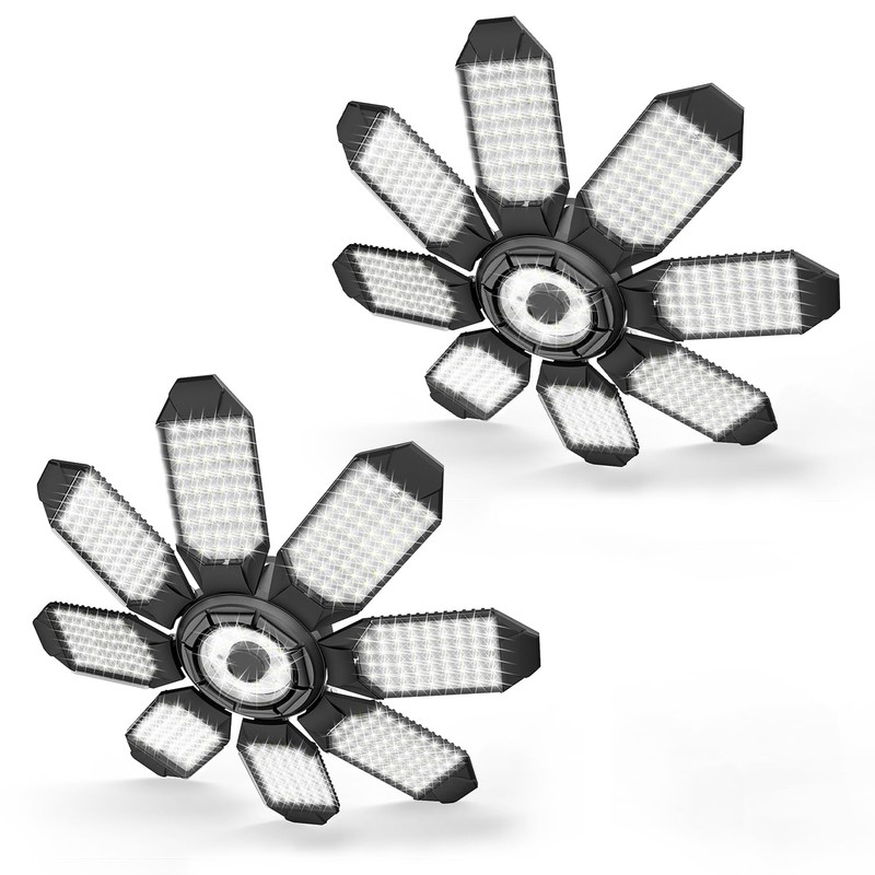 POLARPRA Garage Lights - 40000LM Super Bright Garage Lights Ceiling Led w/ 8 Deformable Panels Compatible for E26/E27 Screw in Socket Garage Lighting Bulb for Barn Basement Shops Attic - 2Pack