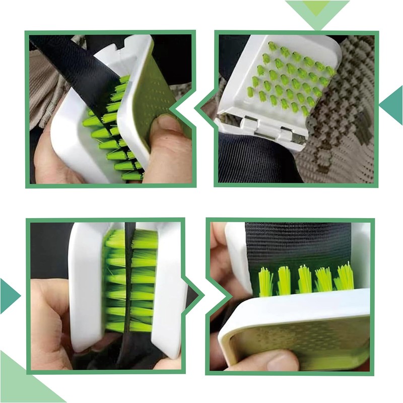Polcatay 2 PCS Car Seat Belt Cleaning Brush, U-Shaped Non-Slip Double-Sided Quick Cleaning Tool, Foldable Portable Multi-Functional Knife and Fork Brush, Universal for Cars Home (Green)