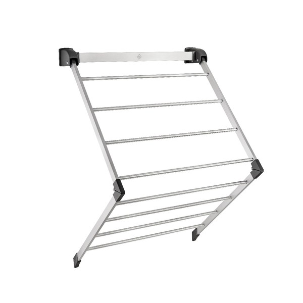 This expandable Over-the-Door Mountain Lock dryer is the perfect solution for air drying garments in tight spaces. Featuring a patented locking function and sturdy, no-rust aluminum construction, it can hold up to 40 pounds (18.1 kg) making it ideal for drying anything from delicate garments to wet towels. It folds open to offer 16-feet of drying space and is equipped with two over-the-door hooks, and screws for optional wall-mount assembly. When done, it folds away for quiet storage in the closet or behind the door.