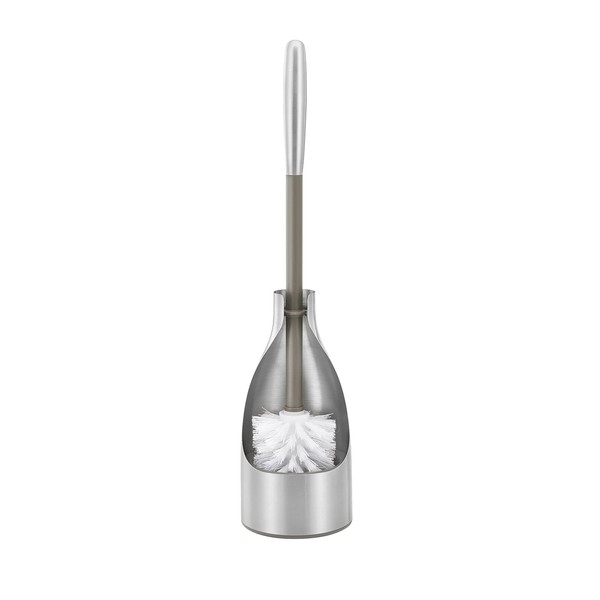 Polder Sleek Stainless Steel Toilet Brush with Caddy, Slim and Discreet Design, Open-Back Design for Odor Control, Rust-Resistant Stainless Steel