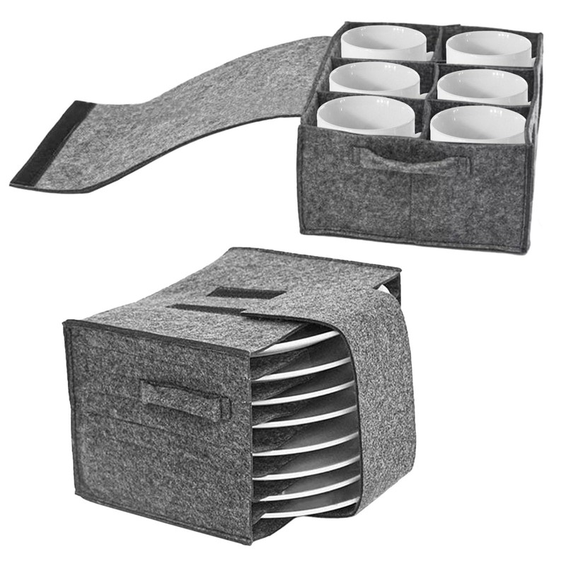 - Protect Tableware: The tableware storage box comes with extra-thick felt dividers, perfect for protecting your tableware. It prevents plates and cups from getting scratched or broken due to collisions, while also eliminating the noise made by objects colliding, creating a quiet environment.