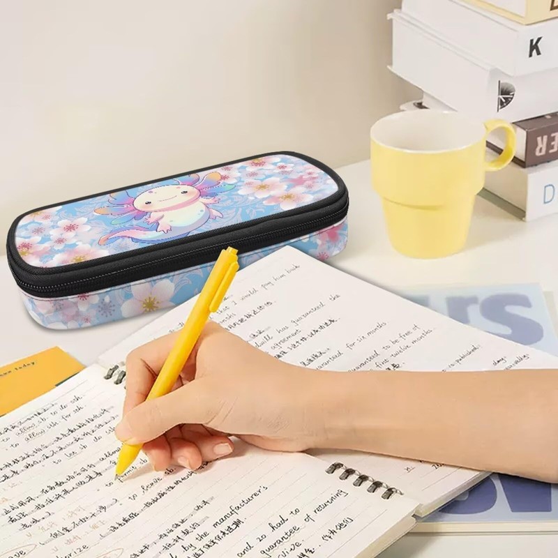 POLERO Cute Axolotl Pencil Case for Girls School Supplies Pen Case with Compartments Cherry Blossom Aesthetic Stuff
