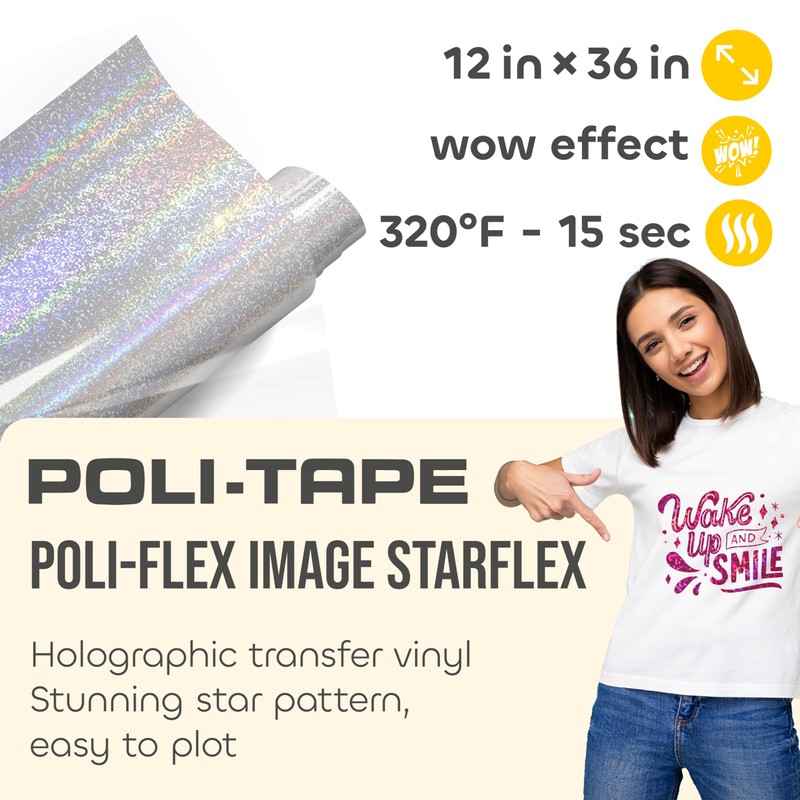 Poli-Flex® STARFLEX - Heat Transfer Vinyl (HTV) - 12 in x 36 in Holographic Iron-On Foil with Star Effect - Easy to Cut & Weed for DIY Shirts - Silver