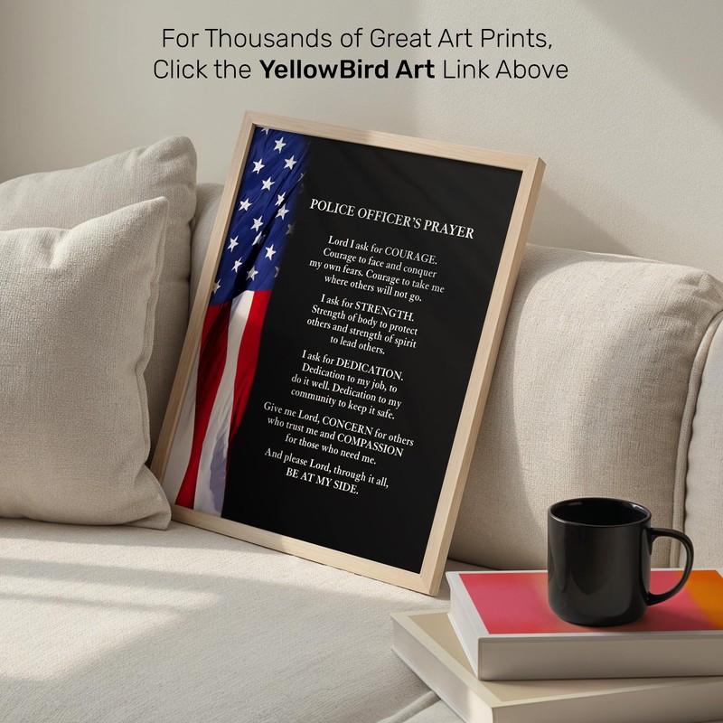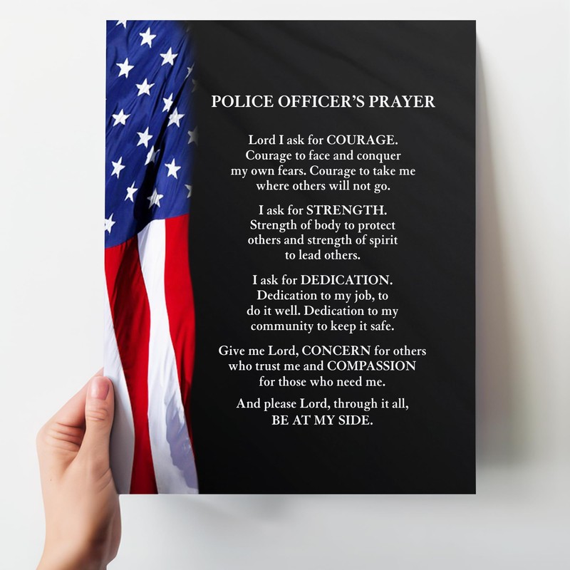 Police Officer Prayer Patriotic Wall Art 11x14 - American Flag Law Enforcement Gift Christian Wall Decor for Home Office Station - Inspirational Religious Quote for Cop First Responder - UNFRAMED