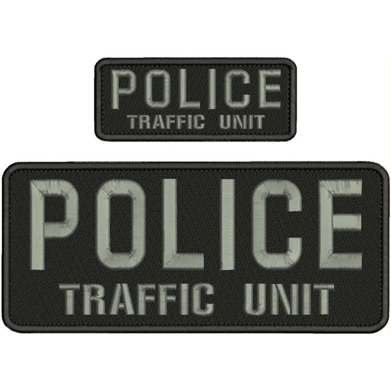POLICE TRAFFIC UNIT embroidery patch 4X10 AND 2x5 hook on back GREY AND BLACK