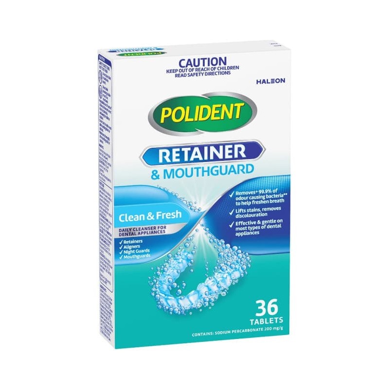 Polident Retainer & Mouthguard Daily Cleanser has been developed with Crystal Clear Technology - to help keep your dental appliance looking clear. The cleaning formulation is designed to lift stains, and remove discolouration and odour-causing bacteria to help maintain the cleanliness, freshness, and transparency of your dental appliance.