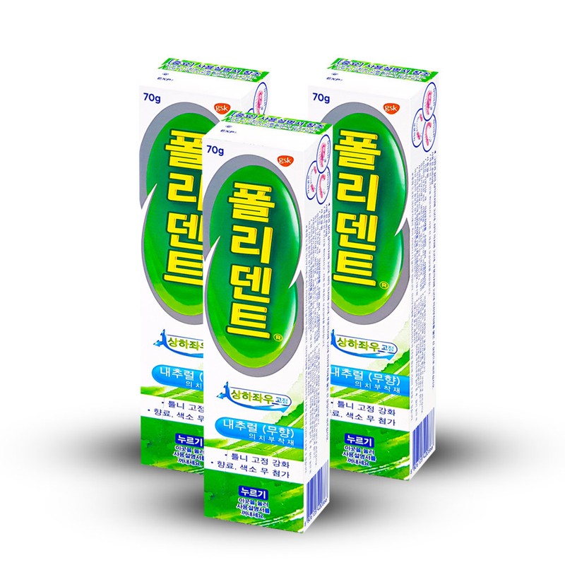 Polident Denture Attachment Natural Unscented 70g x 3 / 폴리덴트 의치부착재 내추럴무향 70g x 3개