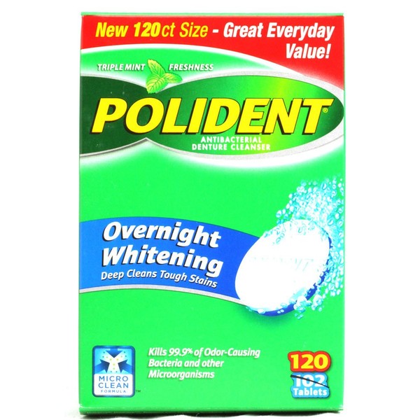 Polident Overnight Whitening, Antibacterial Denture Cleanser, Triple Mint Freshness 120 ea (Pack of 6)