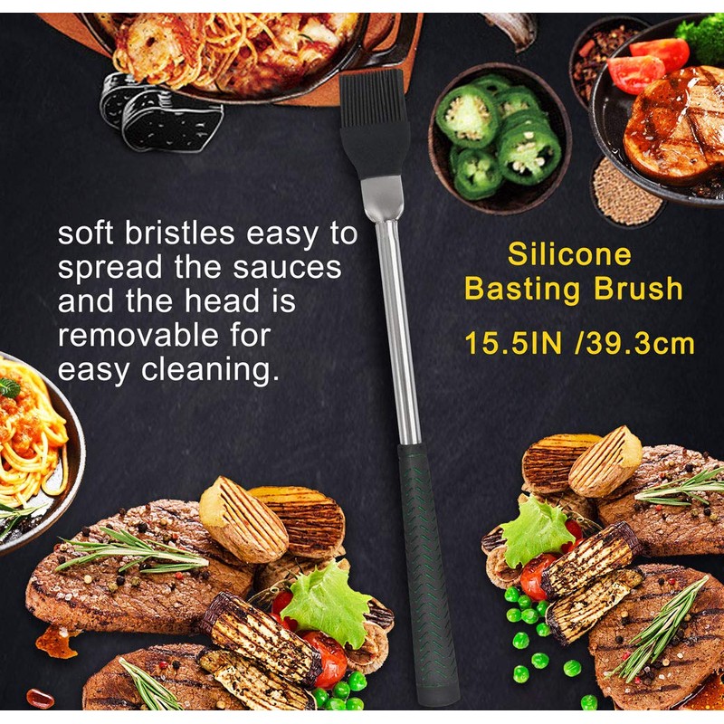 - 【High Quality Construction】This grilling accessories set is made of high quality stainless steel, strong enough to handle all your grilling needs. You'll be amazed how sturdy each bbq tool feels in your hand. Elongated and heat resistant robust rubber handle enable you a comfortable and safe grilling experience.