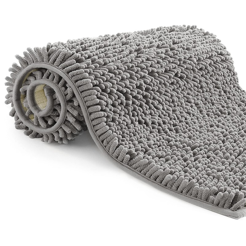 - Material The function of the rug in the bathroom is mainly to prevent water from dripping on the floor, so absorption can be defined as the number one factor. Our bathroom rug made of soft microfibre with special chenille effect makes it visually very comfortable, and the microfibre as an artificial material that is characterised by capillarity, i.e. the ability to absorb water, feels soft and velvety.