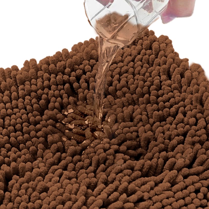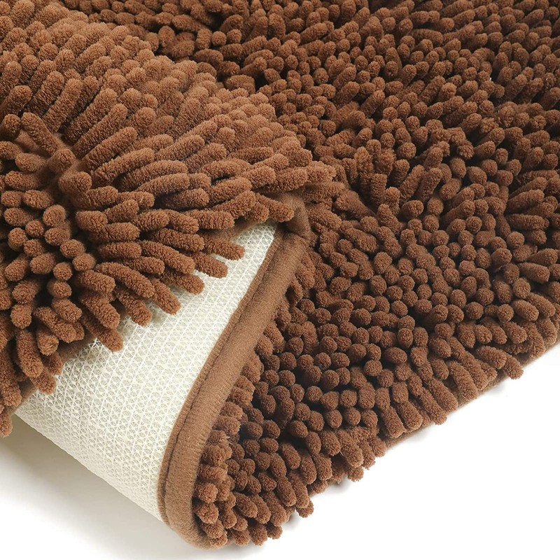 - Material: The function of the rug in the bathroom is mainly to prevent water from dripping onto the floor, so the absorption can be defined as a factor number one. Our bath mat made of soft microfibre with a special chenille effect makes it visually very comfortable, and the microfibre as an artificial material that is characterised by capillarity, the ability to absorb water, feels soft and velvety.