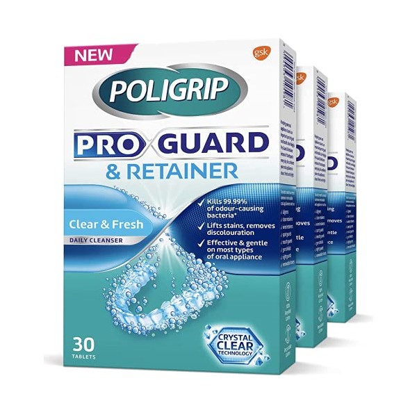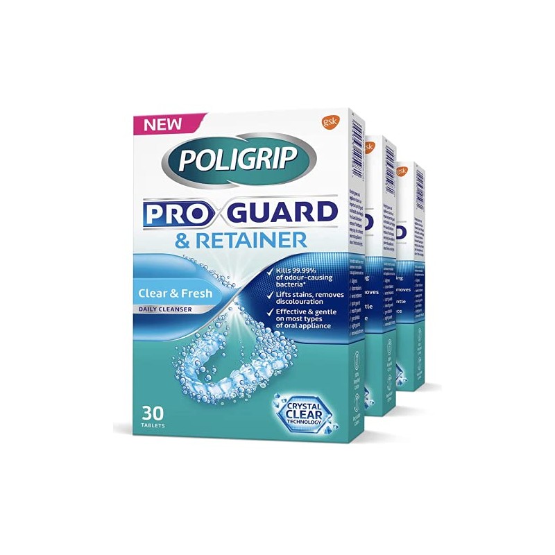 Poligrip Pro Guard Antibacterial Daily Dental Cleaner and Retainer 30 Tablets, 3 Pack
