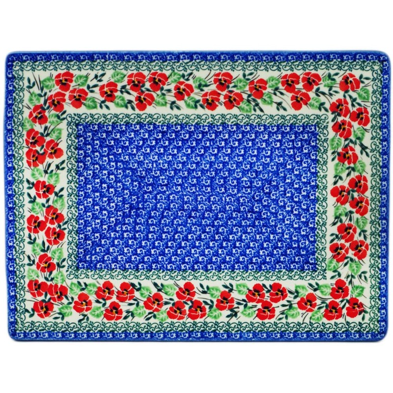 Polish Pottery 13-inch Cookie Sheet made by Ceramika Artystyczna, Red Pansy Theme