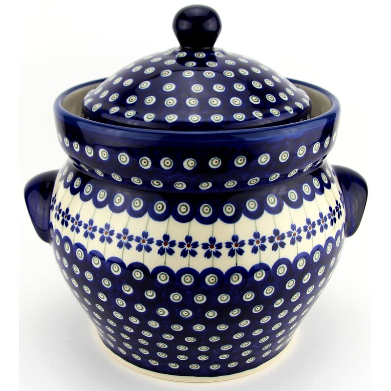 Polish Pottery 4.5 Liter Fermenting Crock Pot From Zaklady Ceramiczne Boleslawiec, Height: 8", Capacity: 4.75 quarts, Floral Peacock Pattern