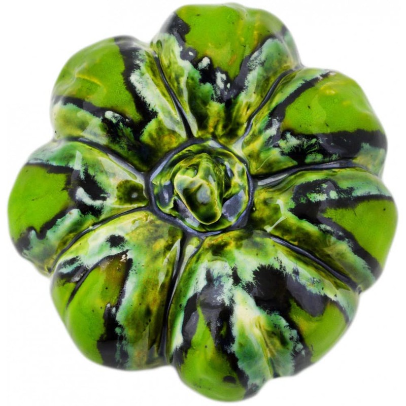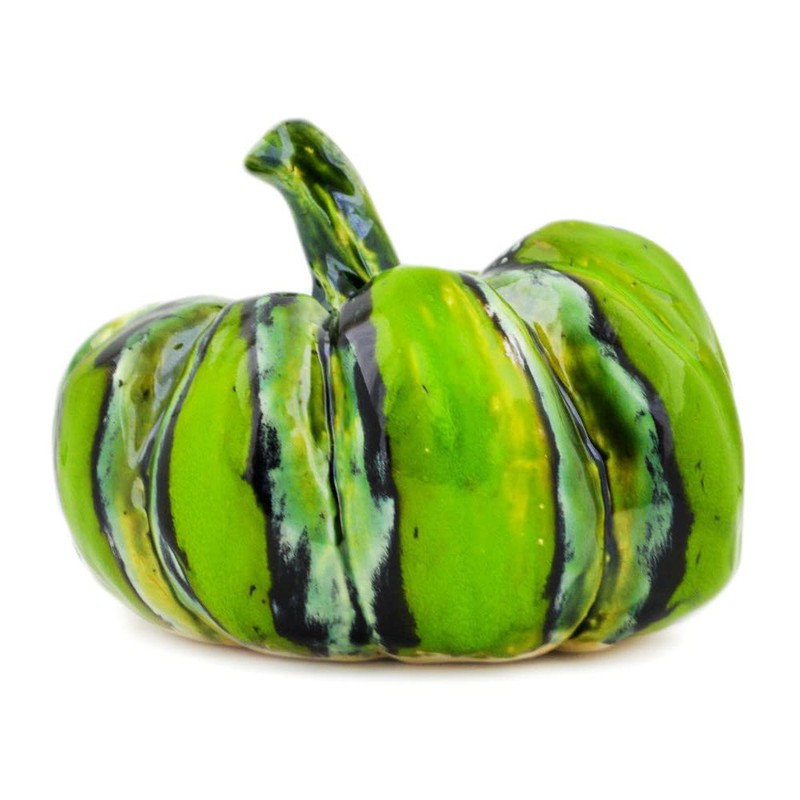 Polish Pottery 7½-inch Pumpkin Figurine (Green Theme) + Certificate of Authenticity