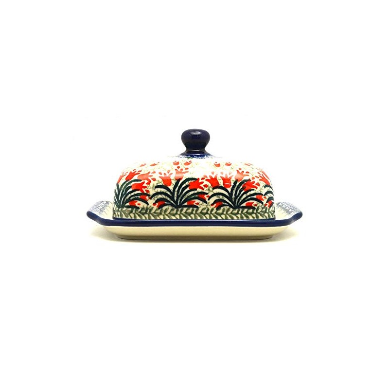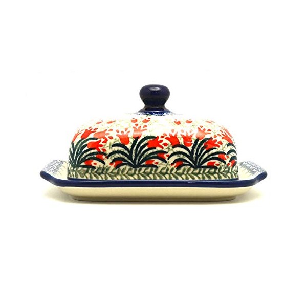Polish Pottery Butter Dish - Crimson Bells