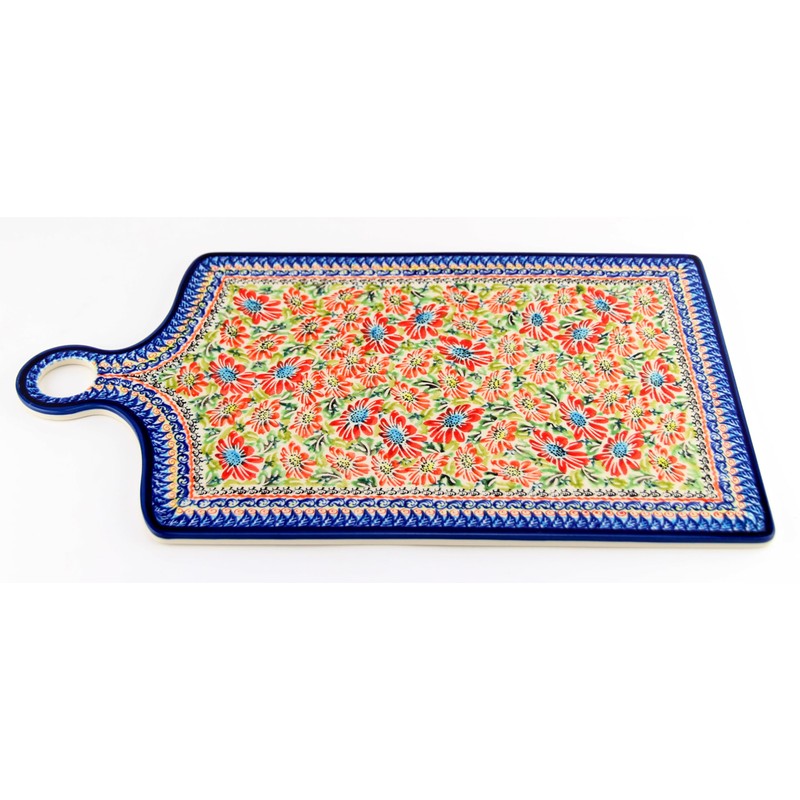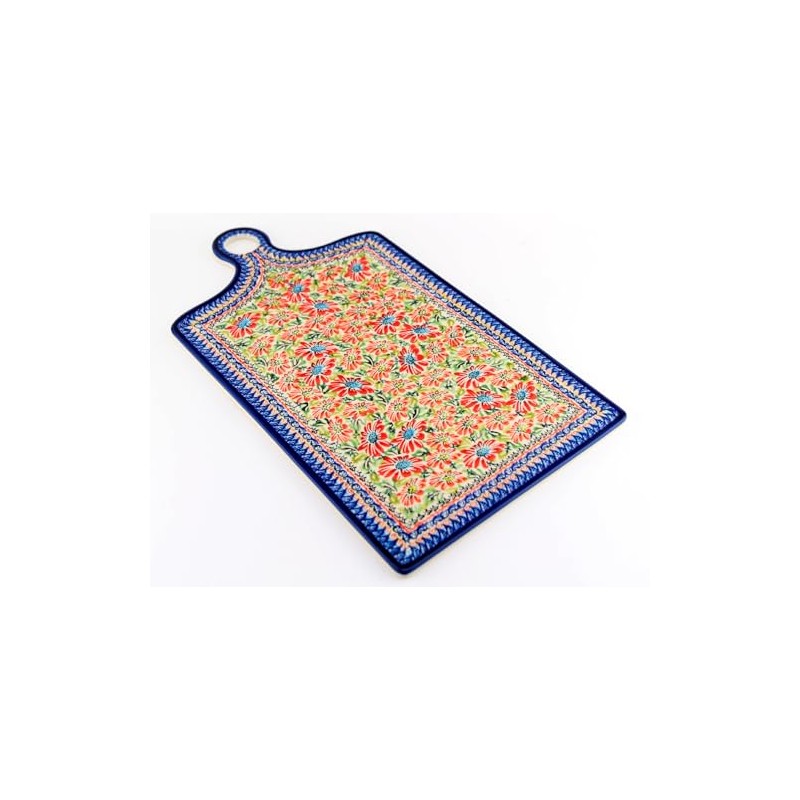 Polish Pottery Market Extra Large Cutting Board From Zaklady Ceramiczne Boleslawiec Unikat Floral Garden Pattern, Dimensions: Length: 16", Width: 10"