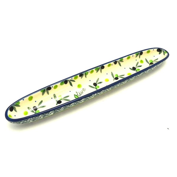 1H x 1 1/2W x 10L Handmade and hand-painted in Poland These long, skinny boats add a special touch to your dining table and can be used for more than just olives! All of our Polish Pottery is safe for use in the microwave, dishwasher,and oven 923- , Olive Boats , Serving , 2379a , Olive Branch , Traditional , olive boats , olive trays , olive dishes , appetizers , polish pottery , ca pottery , ceramika artystyczna , polish stoneware